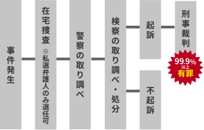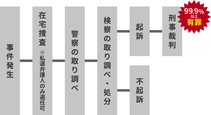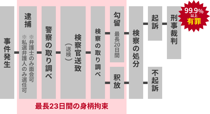 勾留や起訴(99.9%以上有罪)の可能性が高まります
